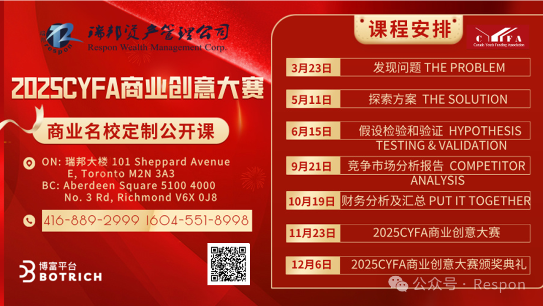 2025年加拿大青少年基金会全新高端定制5堂ZOOM线上大师公开课,助参赛者精准定位创新商业思路方向,帮助众多企业家接班人完成从青少年到企业家的完美转变,让他在青少年就养成创新思维、积累企业管理的领导思维和实战经验,为未来打下坚实的基础!2025年10月19日第五课也是最重要的一课即将开讲!