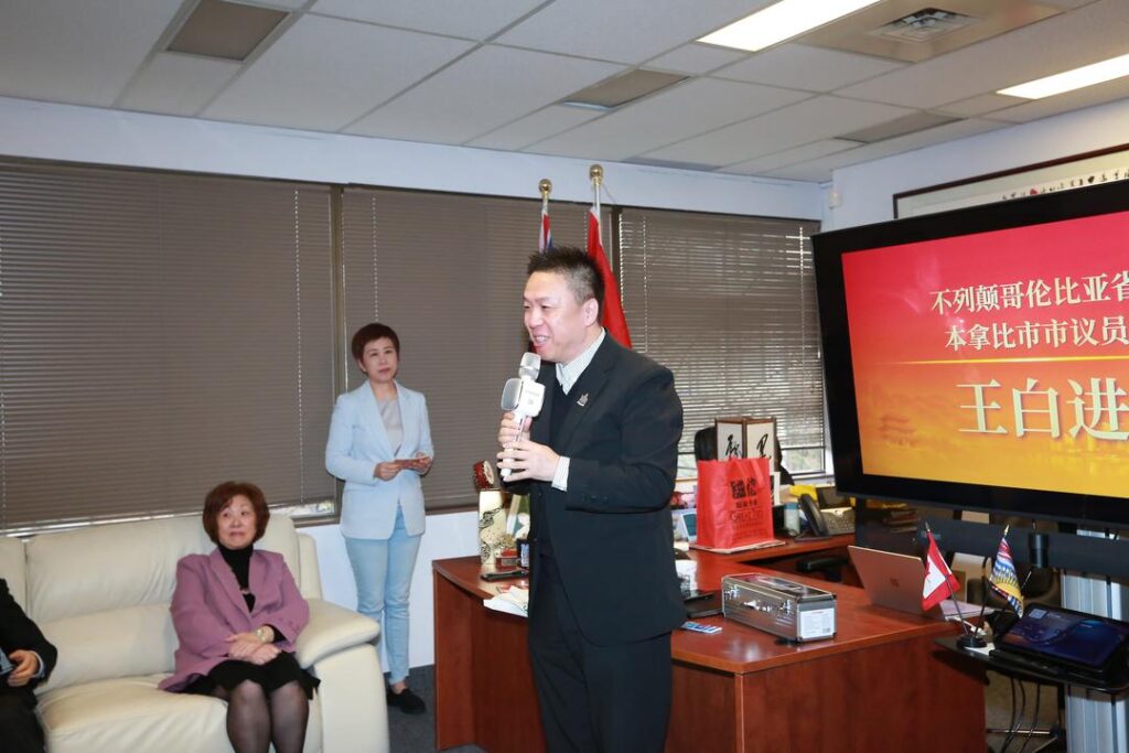 本拿比市议员王白进说他的祖籍就是湖南永州的,非常高兴家乡代表团来访温哥华。他围绕新能源、碳中和、教育及科技创新等领域分享了本地政策环境与发展方向。