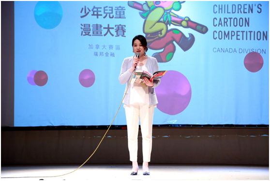 MaggieLi 在致辞中说到,今年,是加拿大参赛的第五年,主办中国(杭州)国际少儿漫画大赛作加拿大赛区比赛。每一年孩子们的作品带给我们很多的惊喜,你们的天赋和才华在这里展现,你们用艺术的表达让这个世界更美了。今天更可以通过艺术连接着爱,大家一起去帮助小儿麻痹症的患者,在这个历程当中也献出我们的这份爱心,欢迎今晚所有的来宾,我们的很多老朋友,还有新朋友们,自己社团的领导和企业媒体的朋友,感谢组委及所有的评委,更要感谢给我们这次比赛的鼎力支持的瑞邦金融。